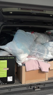 Ok...get a grip Sam says! What's the next place on the list. We are on a mission and will complete it. So off we were a few blocks back to St Frances De Sales. We pulled up and heard someone say they cannot possibly take any more donations. Out of the car Sam goes and quicker than that, she is back with good news! They would LOVE our stuff!